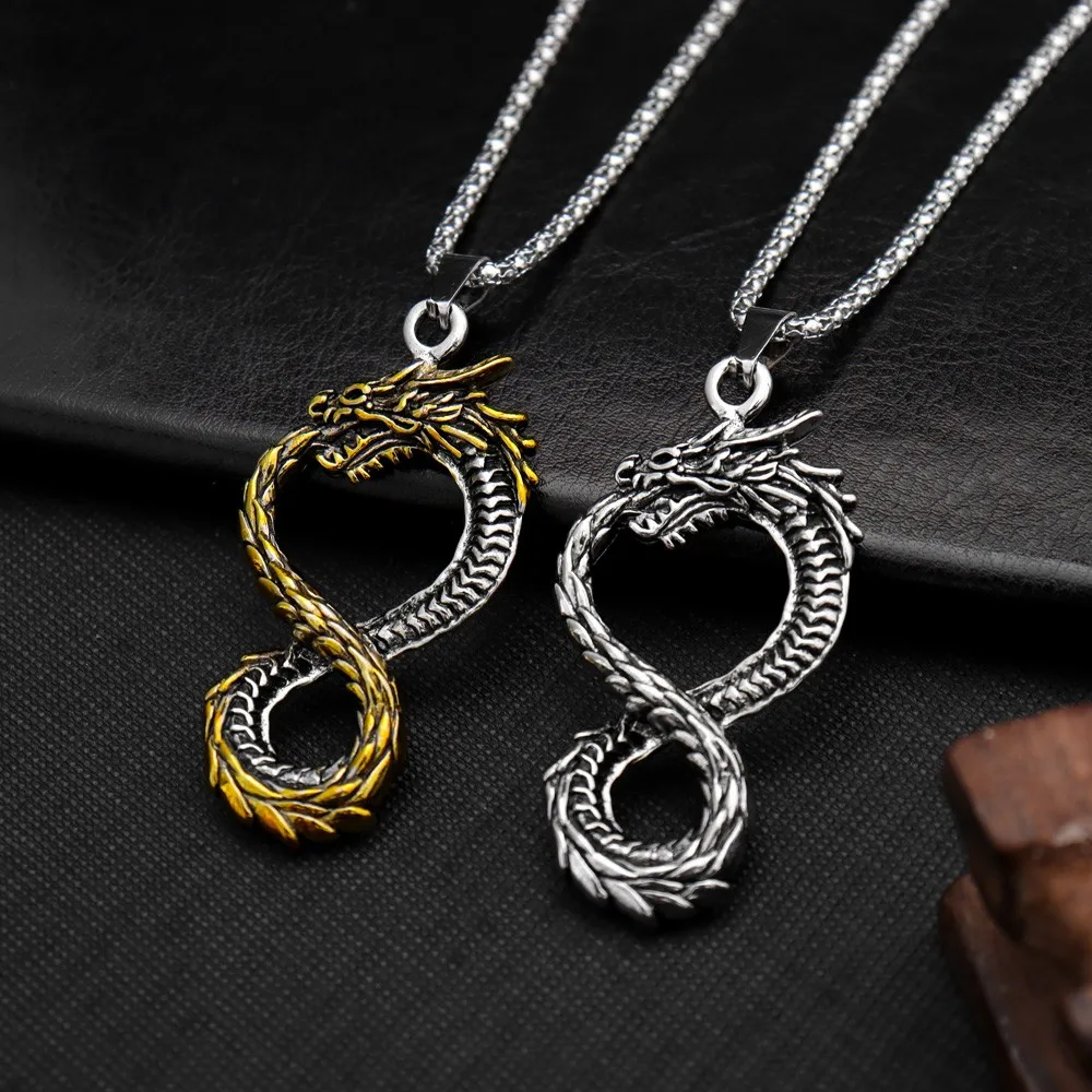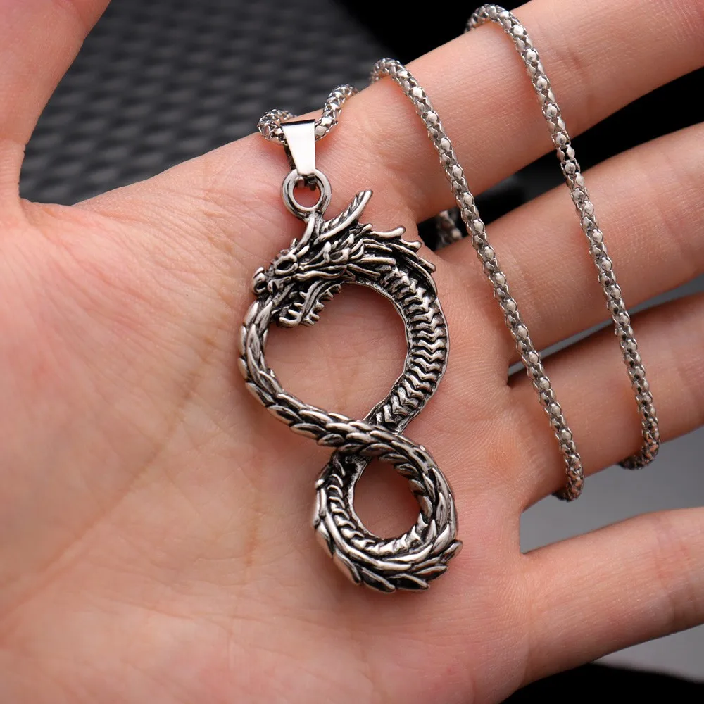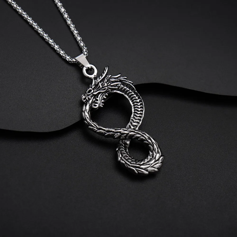 Vintage 8 Tailed Dragon Pendant Charm Men's Necklace Fashion Hip Hop Punk Accessories Viking Jewelry Gift Dropship